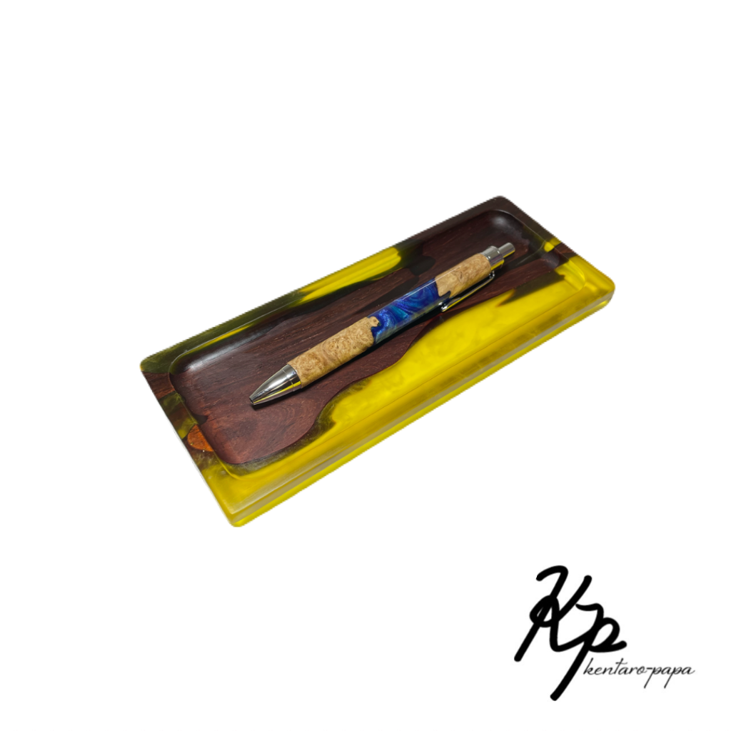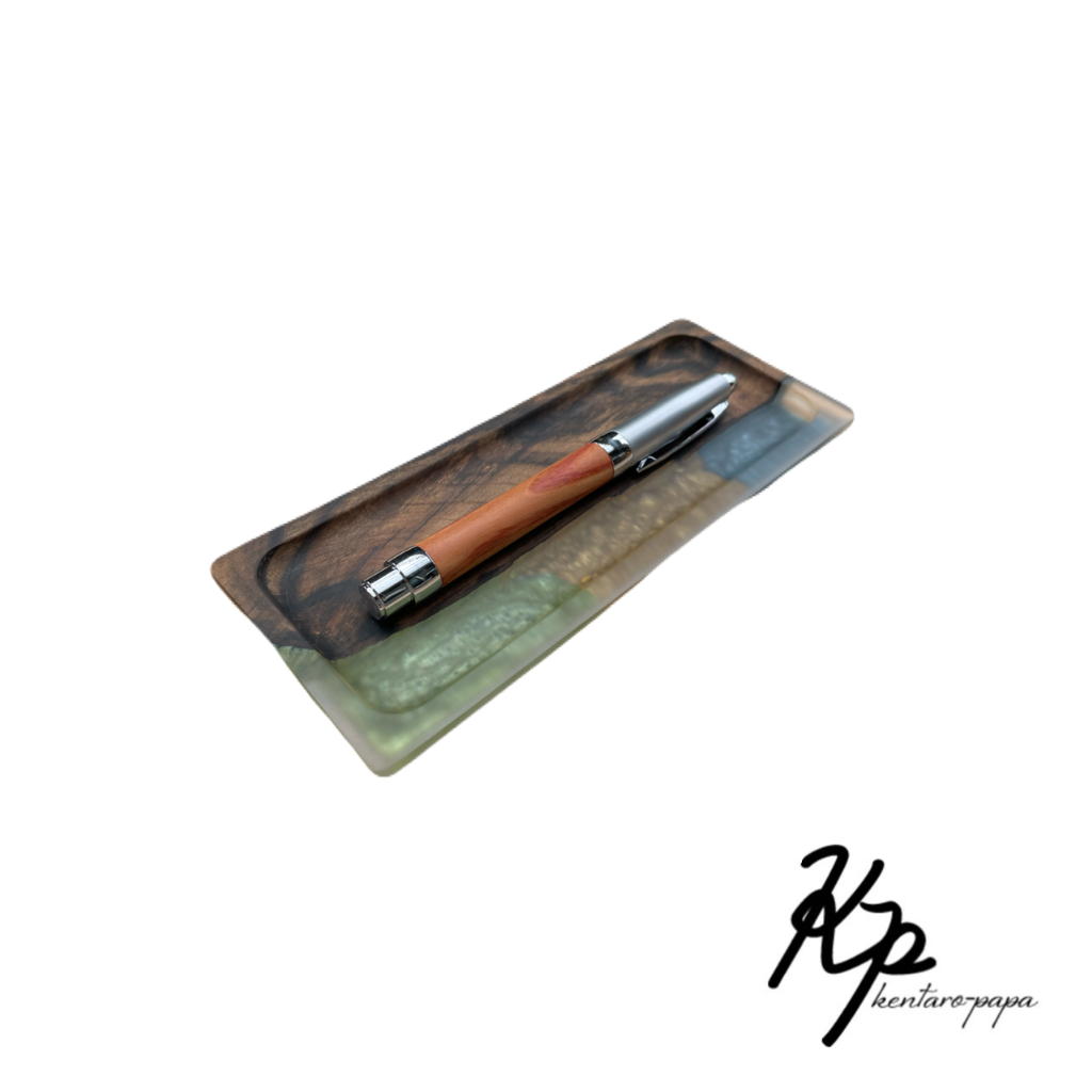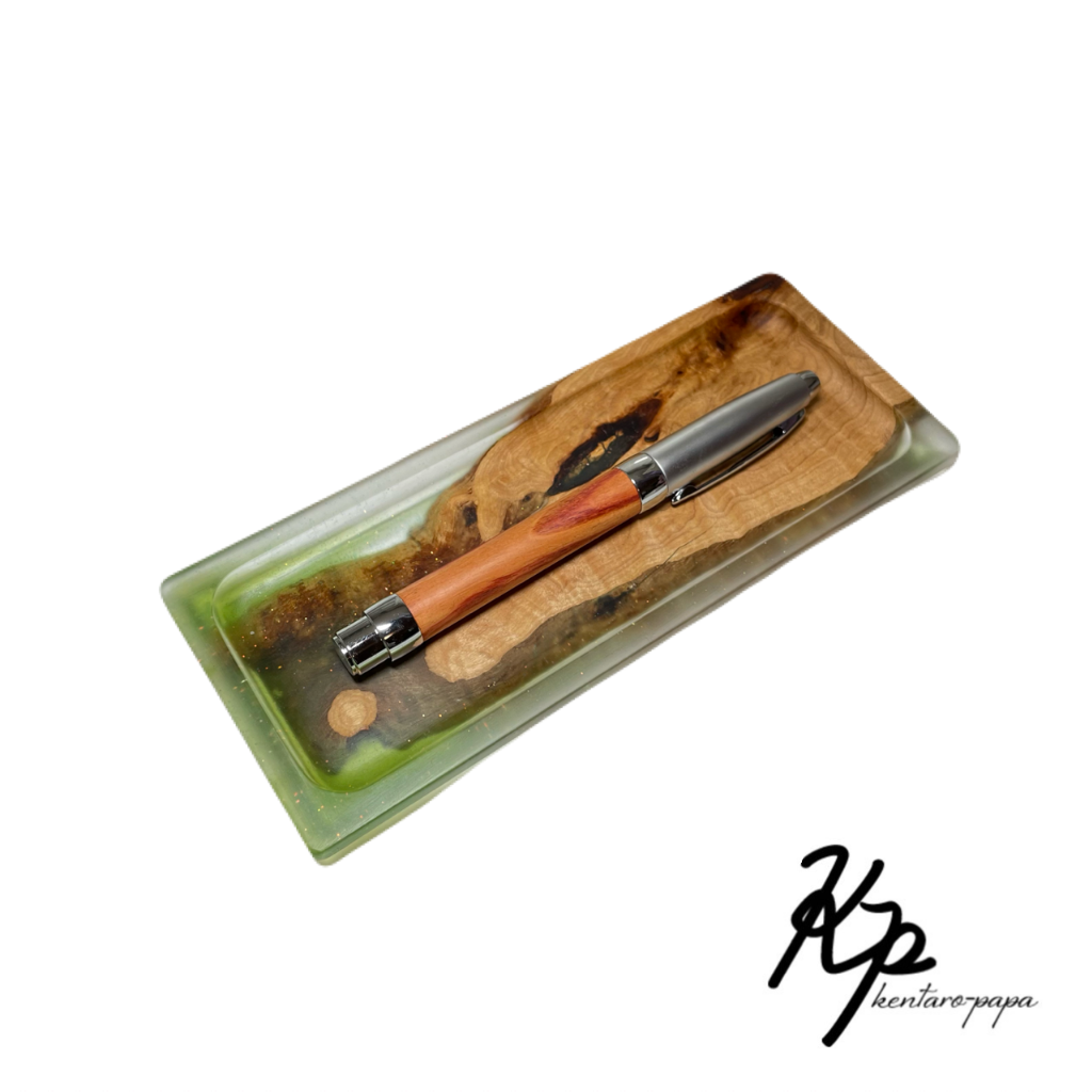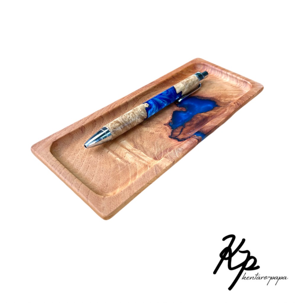 木とレジンを組み合わせた作品です