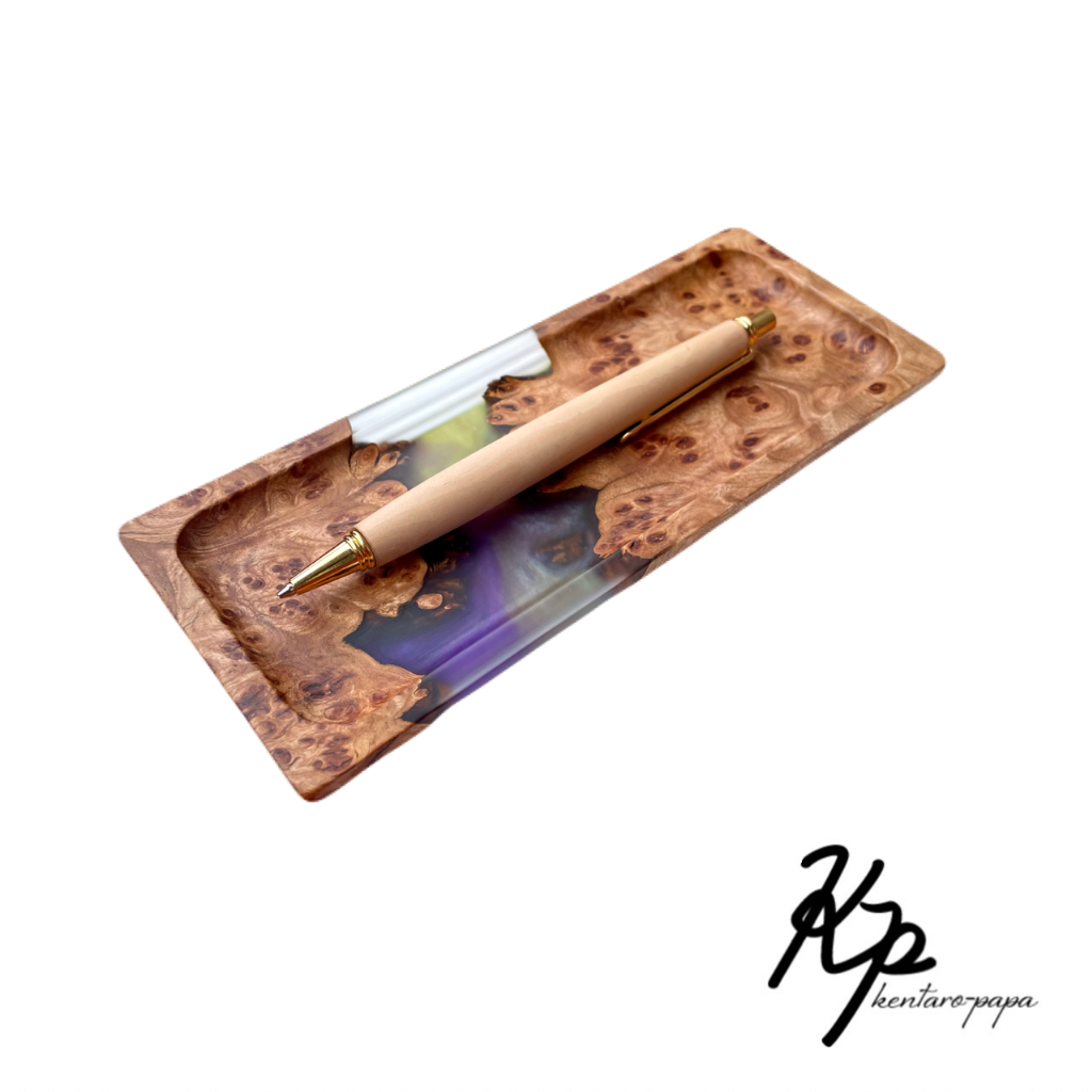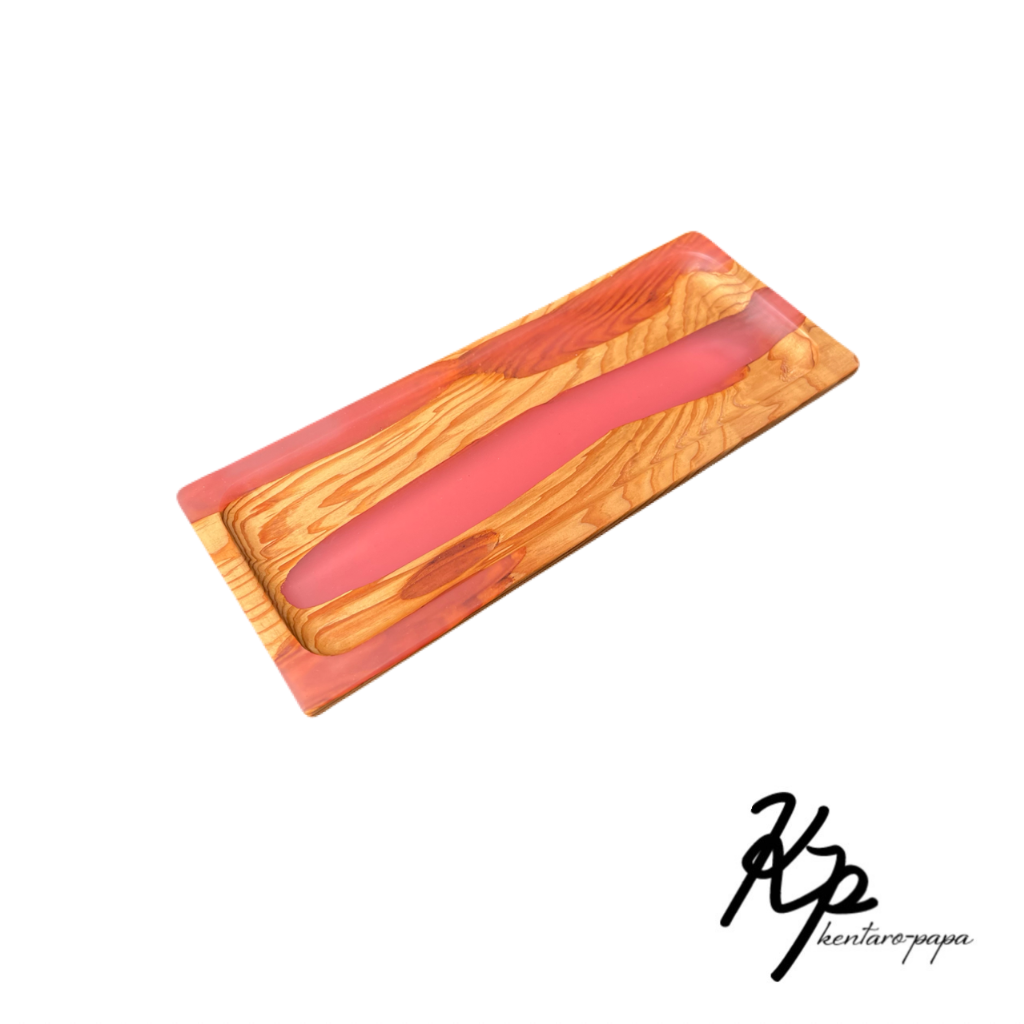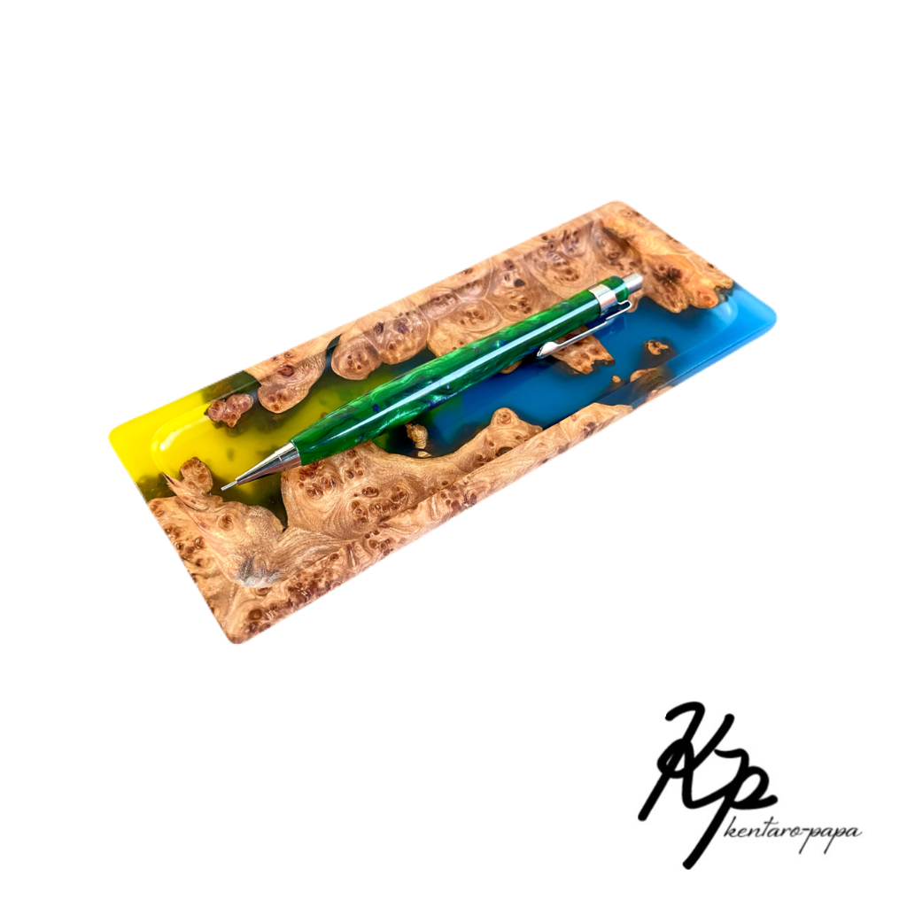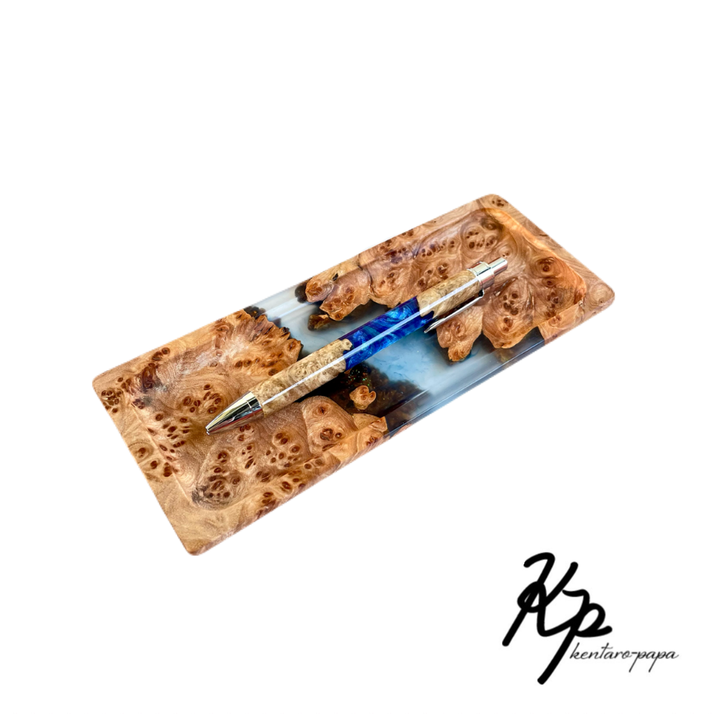 木とレジンを組み合わせた作品です