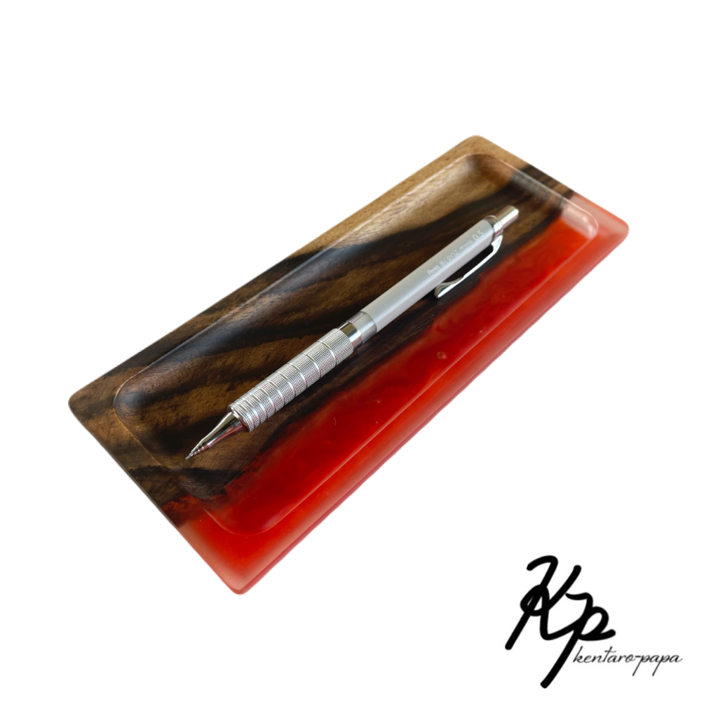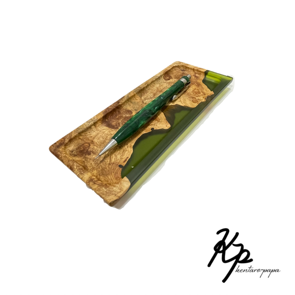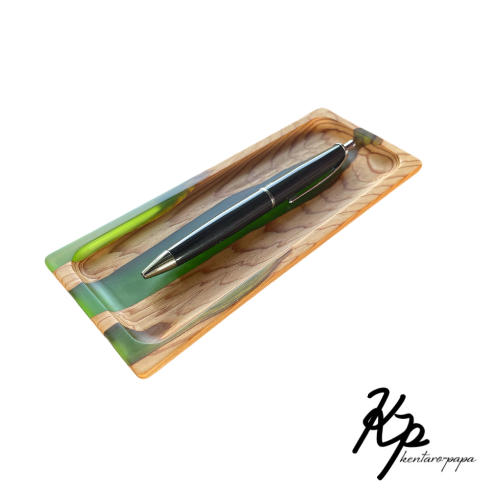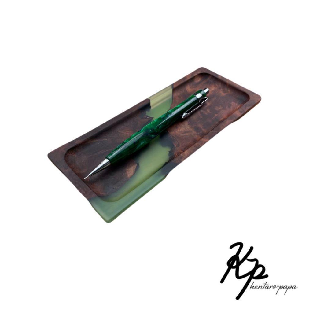 木とレジンを組み合わせた作品です